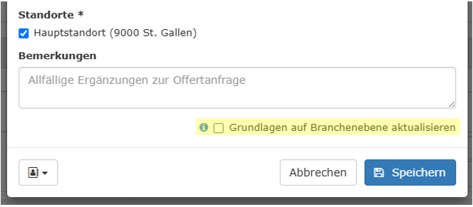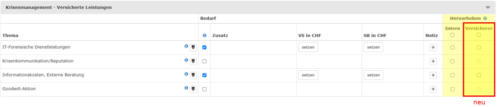 Themen in der Offertanfrage für Versicherer hervorheben